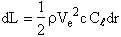 The two quantities of interest are the thrust (T) and the torque (Q). We can write expressions for these for a small radial element (dr) on one of the blades: