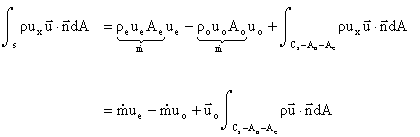 Note that the last term is identically equal to zero by conservation of mass. If the mass flow in and out of the propeller streamtube are the same (as we have defined), then the net mass flux into the rest of the control volume must also be zero.