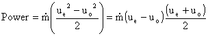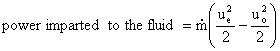 The power expended is equal to the power imparted to the fluid which is the change in kinetic energy of the flow as it passes through the propeller