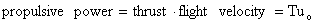 The propulsive power is the rate at which useful work is done which is the thrust multiplied by the flight velocity