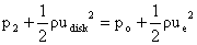 We can now find the pressure upstream and downstream of the disk by applying the Bernoulli equation in the regions of the flow where the pressure and velocity are varying continuously.