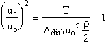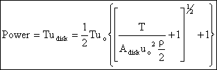 We generally don’t measure or control udisk directly. Therefore, it is more useful to write our expressions in terms of flight velocity uo, thrust, T, (which must equal drag for steady level flight) and propeller disk area, Adisk.