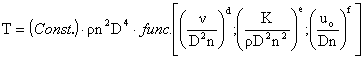 T = f(D; n; r; n; K; uo) = Const. Da nb rc nd Ke uof