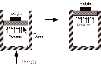 Example: Heat a gas, it expands against a weight. Force (pressure times area) is applied over a distance, work is done.