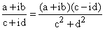 To do division you make use of the fact that (a + ib) * (a - ib) = a2 - (ib)2 = a2 + b2.