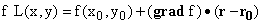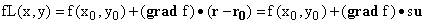 Suppose we seek the directional derivative of f in a direction defined by unit vector u. Then if (r - r0) = su, the directional derivative of f (which is close to fL near (x0, y0)) in that direction is the derivative of fL with respect to s.
