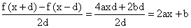 This means that the symmetric approximation is exact for any value of d for any quadratic; no need to make d small; and this is not true for the asymmetric formula.