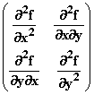 Notice that if we make a matrix out of the four possible partial derivatives (two choices for first, with respect to x or y, and then the same two choices for second derivative) in the obvious way