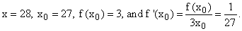 The simplest thing we can do is to make the "constant approximation", and approximate the cube root of 28 by 3, as if the cube root function were a constant.