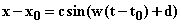 where x is the variable hitherto called x-x0, M is the spring mass, k its spring constant, f measures the frictional loss experienced by the system, w is the frequency of the forcing function and c its amplitude.