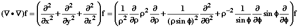 In rectangular coordinates and spherical coordinates the Laplacian takes the following forms, which follow from the expressions for the gradient and divergence