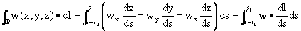 We seek to evaluate an integral along a path, P, of the dot product w(x,