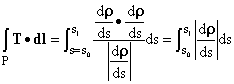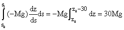 Since F = -Mgk, the integrand in the final ordinary integral ds becomes