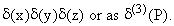 The density of a point particle can then be described as the product of delta functions in each of the three variables x, y and z. It can be written as