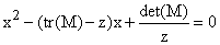 x2 - tr(M)x + det(M) = 0