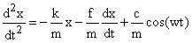 =(-$B$3*(B28+(A29-A28)*C28)-$B$4*(C28+(A29-A28)*D28)-$B$6*SIN($B$7*A29))/$B$2 |