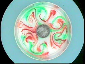 - If the rotation rate is increased in small increments (0.2 rpm or so) we can map the transition from axisymmetric flow through regular waves to turbulent eddies.