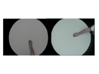 - Launch the puck on a trajectory that lies within a fixed vertical plane containing the axis of rotation of the parabolic dish. Viewed from the laboratory, the puck moves backwards and forwards along a straight line. The straight line will expand out into an ellipse if the frictional coupling between the puck and the rotating disc is not negligible. When viewed in the rotating frame, however, the trajectory appears as a circle tangent to the straight line. See the movie loop below.
