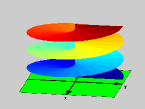 For example, in the case of the logarithm, we can start with the complex plane cut along the negative real axis. On this cut plane, the logarithm has infinitely many branches, each differing from the “next” by 2πι. Thus, if we join all these cut planes (lower lip of the cut(*1) in a plane to the upper lip of the cut in the prior plane), what we obtain is the infinite spiral staircase-like surface displayed on the picture.