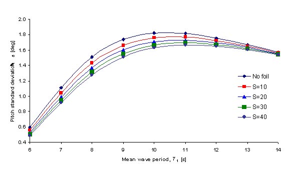 Pitch standard deviation with foil at x=-68m. AR=10, H1/3=6m and U=45 knots.