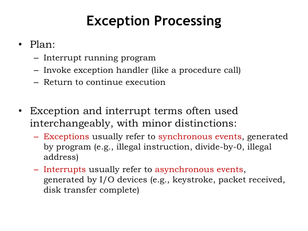 We’ll use the term “interrupt” to refer to asynchronous exceptions resulting from external events whose timing is unrelated to the currently running program.