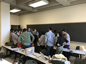 Students form groups of two to four and work for six hours on a small project. We help facilitate this by discussing techniques for collaborative design, guiding the class in an improv activity, lead a brainstorming activity for the whole class to help students identify collaborators, allow students ample time to self-organize into teams. Students then have 6 hours of class time to develop an idea for a small interactive project with Arduino, to create the project, to discover if they like their teammates, and to learn about all the technical skills that will be needed on a team to succeed. Each group does a short presentation for the entire class and talks about their project, but most importantly talks about what they learned.