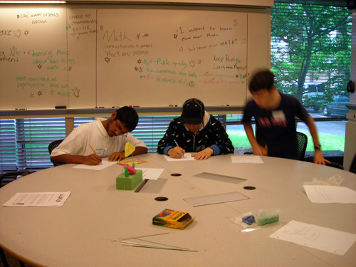 Students build 3D models using modeling clay.