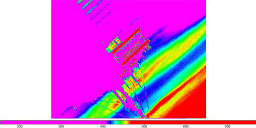The contrast in this image of the Prudential Center was adjusted using ds9 software.