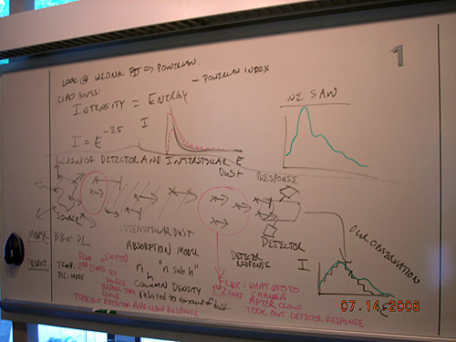 Handwritten notes on a whiteboard showing fitting models.
