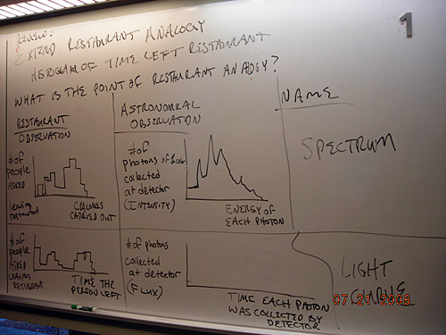 A photo of notes on a whiteboard regarding the restaurant analogy comparison