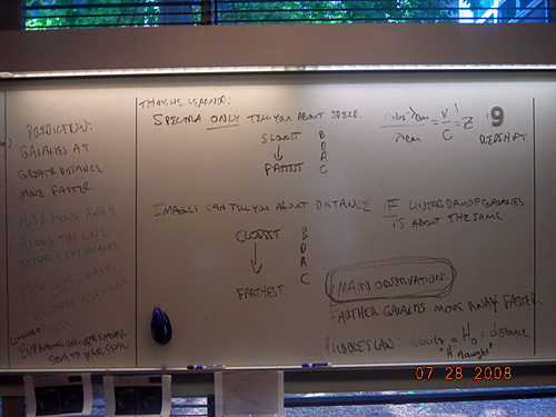 Handwritten notes on a whiteboard about Hubble's Law.