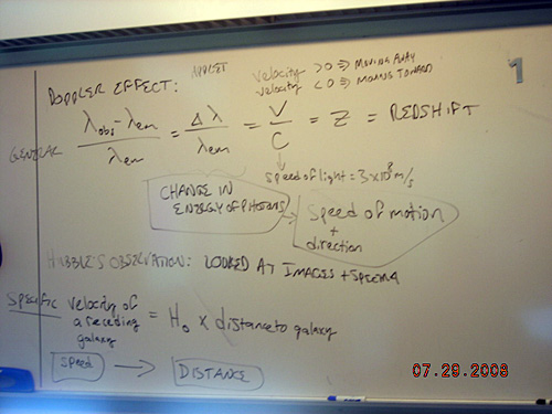 Handwritten notes on a whiteboard about Hubble's Law.