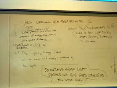 Handwritten notes on a whiteboard about a radiometer laser.